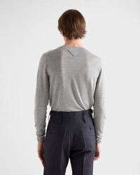 A precious blend of cashmere and silk adds a light touch and refined allure to this long-sleeved sweater with a simple design. The casual style is completed with the tonal triangle logo - Product code: UMF053_17EN_F0K44_S_OOO - Plain knit - Regular fit - Ribbed knit cuffs and hem - Fabric triangle logo - Sartorial label - Three button front closure - Imported - The model is 187 cm tall and wears a size 48 Height: 70cm MATERIALS Main material: 30% silk 70% cashmere