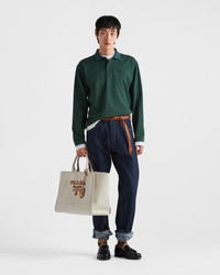 This cotton polo shirt is animated by layering and contrasts that add an original touch to the casual silhouette. The long-sleeved style defined by a relaxed fit is decorated with the emblematic fabric triangle logo. - Product code: UJL72B_15DA_F035G_S_OOO - Long sleeves - Ribbed knit collar - Straight hem - Mother-of-pearl buttons - Conceptual triangle logo - Length 70 cm, Size M - Imported - The model is 187 cm tall and wears a size 48 Height: 70cm MATERIALS Main material: 100% cotton