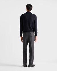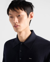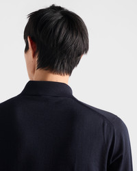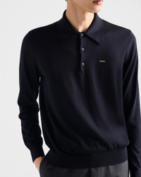This polo sweater, a wardrobe classic with a refined, sporty style, has a long-sleeved silhouette and is made of superfine wool. The soft, sleek garment is completed by the lettering logo embroidered in a contrasting color. - Product code: UMF147_18DY_F0008_S_OOO - Plain knit - Slim fit - Ribbed knit collar - Raglan shoulder - Ribbed knit cuffs and hem - Embroidered logo - Front button closure - Imported - The model is 178 cm tall and wears a size 38 Height: 66cm MATERIALS Main material: 100% virgin wool