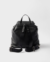 This minimalist, functional, and innovative backpack sums up the codes of Prada's DNA with its unique and timeless design. The iconic style is made of soft leather that adds a refined character to the silhouette while preserving its functional and versatile spirit. - Product code: 1BZ811_2HE5_F0002_V_DSM - Detachable, adjustable logo-print woven tape shoulder straps and leather handle - Front flap pockets with strap and buckle closure - Metal hardware - Enameled metal triangle logo on the flap - Drawstring, magnet and buckle closure - Logo-print Re-Nylon lining with two pockets, including one with zipper - Imported Height: 31cm Width: 28cm Length: 14cm MATERIALS Main material: Calfskin