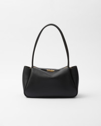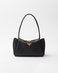 This bag with a sophisticated, contemporary design features simple yet refined details, brightened by the metal hardware. The versatile style has sleek, minimalist lines emphasized by the buttery feel of soft grain leather. The accessory, an expression of exceptional artisanal know-how, is decorated with the iconic enameled metal triangle logo. - Product code: 1BA444_2CYS_F0002_V_OVX - Metal hardware - Enameled metal triangle logo on the front - Zipper closure - Fabric logo-print lining with three compartments - Imported Height: 16cm Width: 28cm Length: 10.5cm MATERIALS Main material: Calfskin