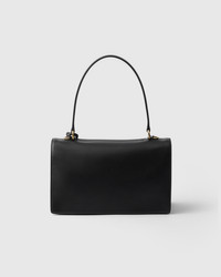 Inspired by rigid, formal work bags, this leather bag is a reinterpretation of the classic office silhouette with a new attitude. The archetypal shape is softened and enriched with sophisticated, feminine details. The vertical clasp, taken from the archives, embellishes the accessory characterized by a long handle that can be worn over the shoulder. - Product code: 1BN023_2CYS_F0002_V_TOO - Leather handle, drop 20 - Detachable, adjustable leather shoulder strap. Maximum length 110 cm - Minimum length 100 cm - Maximum drop 57 cm - Minimum drop 52 cm - Metal hardware - Lettering logo engraved on clasp - Flap closure with push-lock clasp - Nappa leather lining with two compartments and two pockets, including one with zipper - Imported Height: 16cm Width: 28cm Length: 10cm MATERIALS Main material: Calfskin