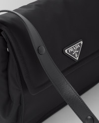 This shoulder bag made of padded Re-Nylon, the distinctive innovative material of the brand, comes with a leather shoulder strap. The accessory completed by a back pocket is illuminated with metal hardware and is decorated with the enameled metal triangle logo that stands out on the flap. For sustainable care to preserve the product's characteristics and reduce microfiber shedding, we recommend not washing the item too often. Let the product air out after every use and have it dry cleaned at a specialized ecological dry cleaners. - Product code: 1BD255_RDLN_F0002_V_OOO - Adjustable leather shoulder strap - Back zipper pocket - Metal hardware - Enameled metal triangle logo on the flap - Flap closure with magnet - Re-Nylon lining with two pockets, including one with zipper - Imported Height: 21.5cm Width: 30cm Length: 12cm MATERIALS Main material: Recycled polyamide