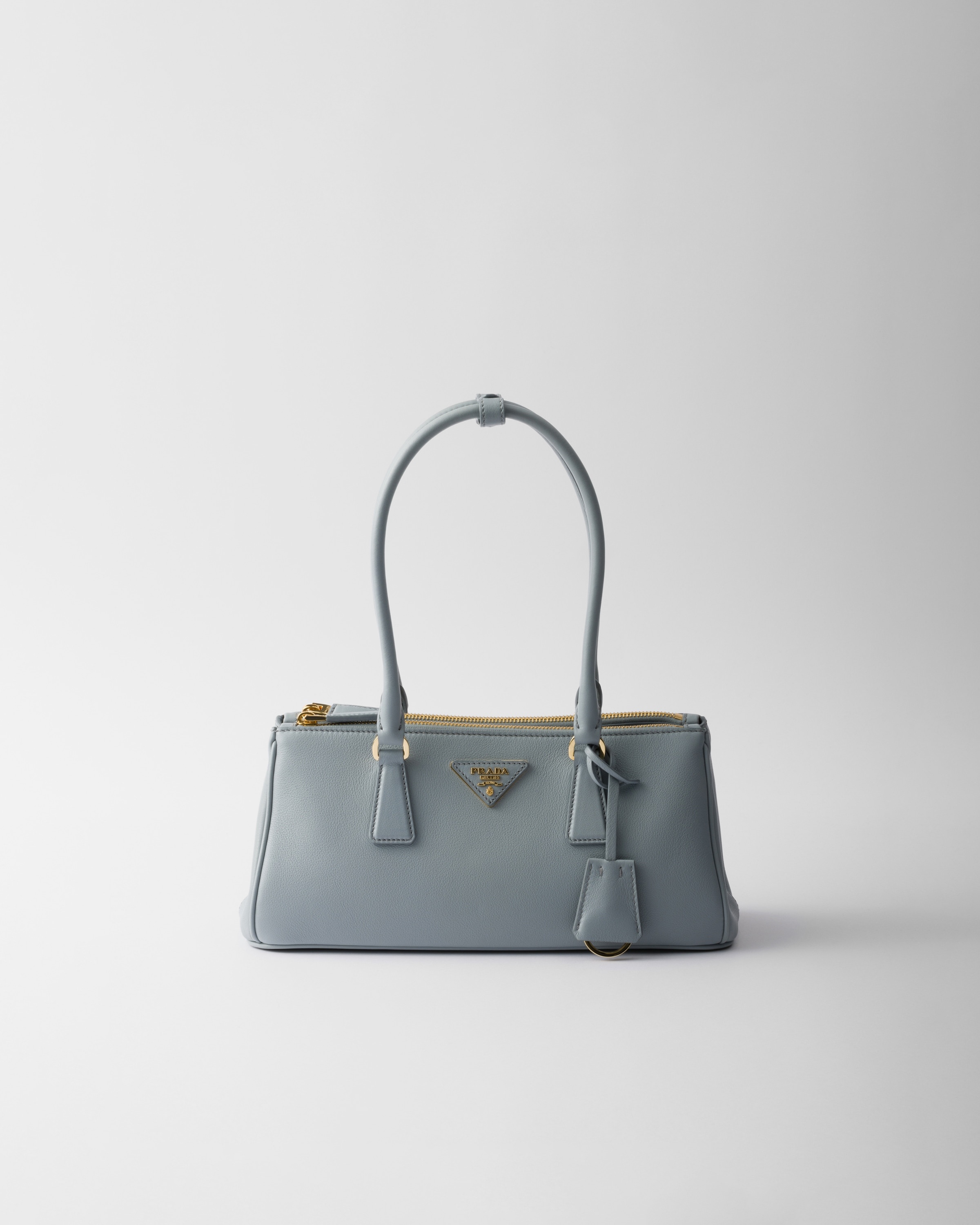 The production of the Prada Galleria bag blends industrial precision and the refined accuracy of craftsmanship that can only be performed by hand. The design of this style has a reinterpreted silhouette with an elegant, elongated shape. Giving rise to the definition of “timeless”, the Galleria bag has become a hallmark of the Prada identity. - Product code: 1BA457_2CYS_F0384_V_YO0 - Leather handles, drop: 20 cm - Detachable, adjustable leather shoulder strap. Maximum length 120 cm - Minimum length 110 cm - Maximum drop 60 cm- Minimum drop 55 cm - Removable leather key ring - External zipper pockets - Metal hardware - Leather triangle with metal lettering logo on the front - Snap closure on the sides - Nappa leather interior with two pockets, including one with zipper - Imported Height: 14cm Width: 30cm Length: 10.5cm MATERIALS Main material: Calfskin