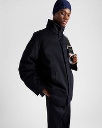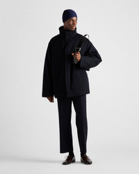 This cashmere down jacket with a sporty style and contemporary design is characterized by enveloping lines, soft volumes, and sleek details. - Product code: SGC718_1YER_F0008_S_OOO - Oversized fit - Stand-up collar - Straight sleeve - Zipper closure and buttons - Wide welt pockets - Straight cuff - Wide shoulder - Straight hem - Unlined - Heat-sealed tape seams - Stowaway hood - Fabric triangle logo - Enameled metal triangle logo inside - Garment with removable goose down liner - Imported Height: 85cm MATERIALS Main material: 100% cashmere