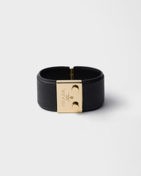 Archival details and emblematic materials borrowed from the leather goods collection define this Saffiano leather bracelet with a distinctive style. - Product code: 1IB728_053_F0002 - Clip closure - Engraved logo - Imported Height: 3.5cm MATERIALS Leather