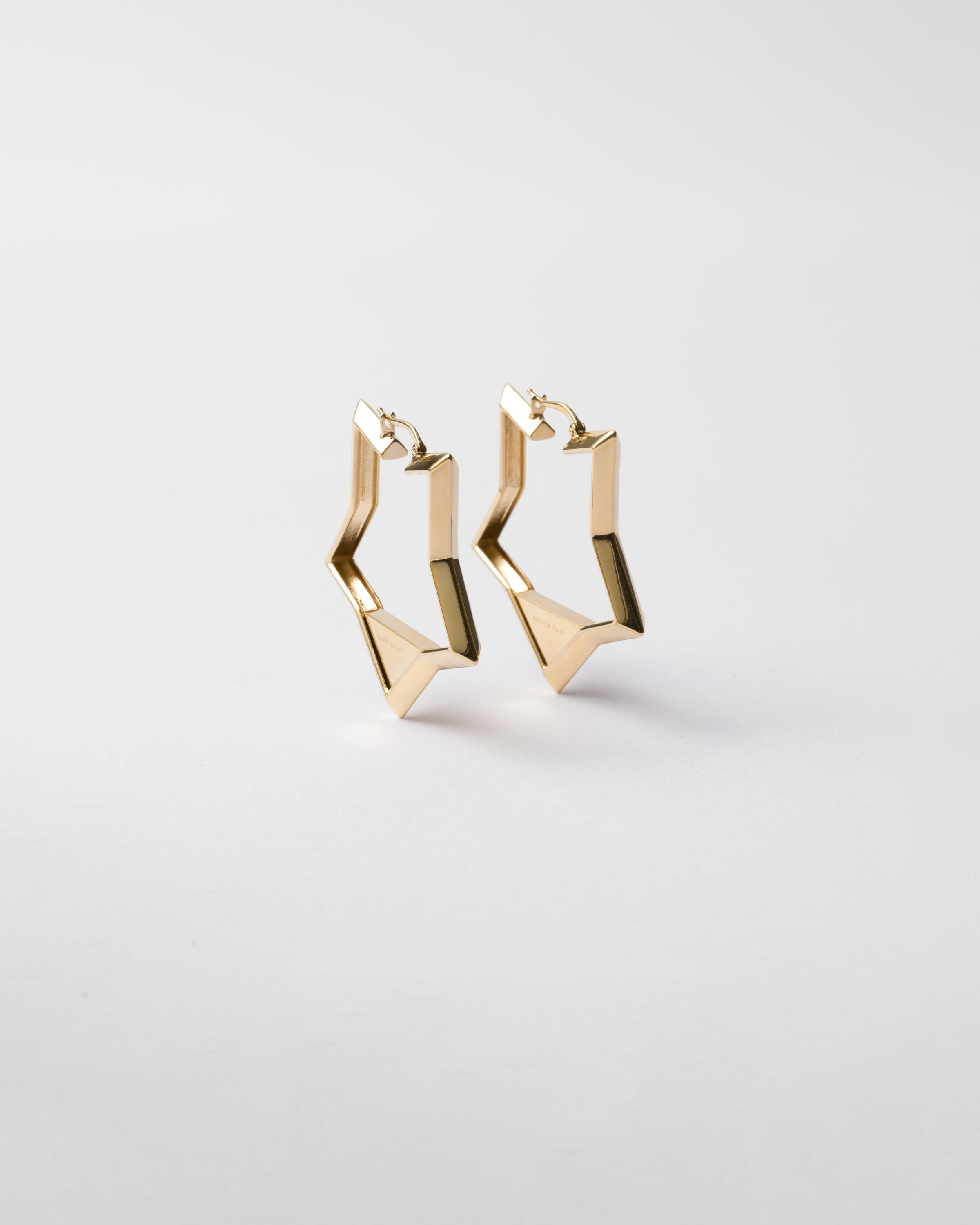 These sleek, elegant earrings with iconic details have a geometric design embellished with the triangle logo. - Product code: 1IO147_2C41_F0056 - For pierced ears - Metal triangle logo - Imported MATERIALS Other Materials