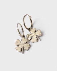 The use of symbols as amulets and decorations inspires these hoop earrings with an ironic and refined character. The accessories are made of metal with an antique finish that adds dimension to the design decorated with the engraved lettering logo. - Product code: 2IO265_2HKR_F0116 - For pierced ears - Engraved logo - Imported MATERIALS Other Materials