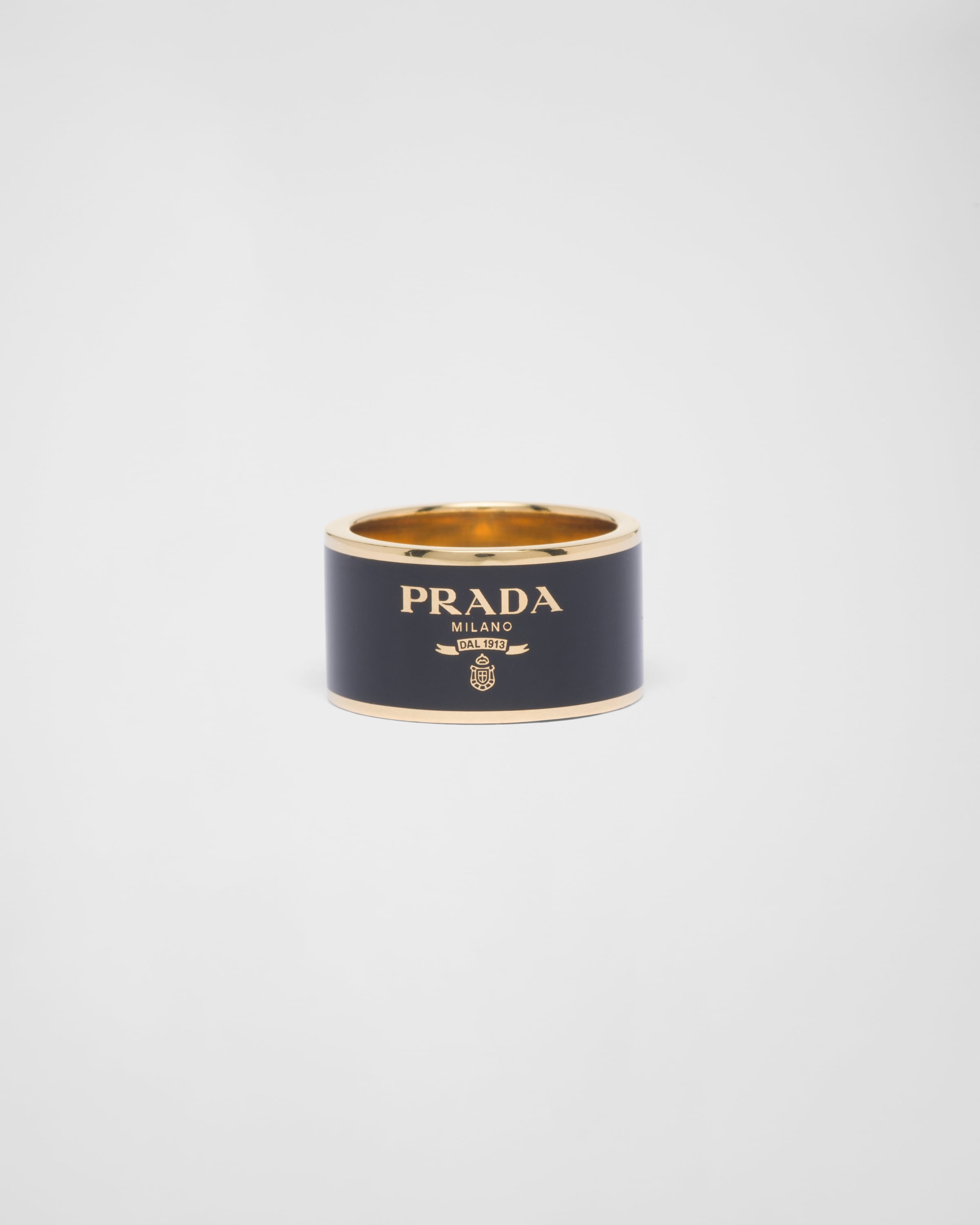 This enameled metal band ring with a sleek, contemporary line is decorated with the lettering logo in a contrasting color that completes the accessory with an iconic note. - Product code: 1IA007_2BA6_F0J05 - Enameled metal logo - Imported Height: 1.2cm MATERIALS Main material: Brass
