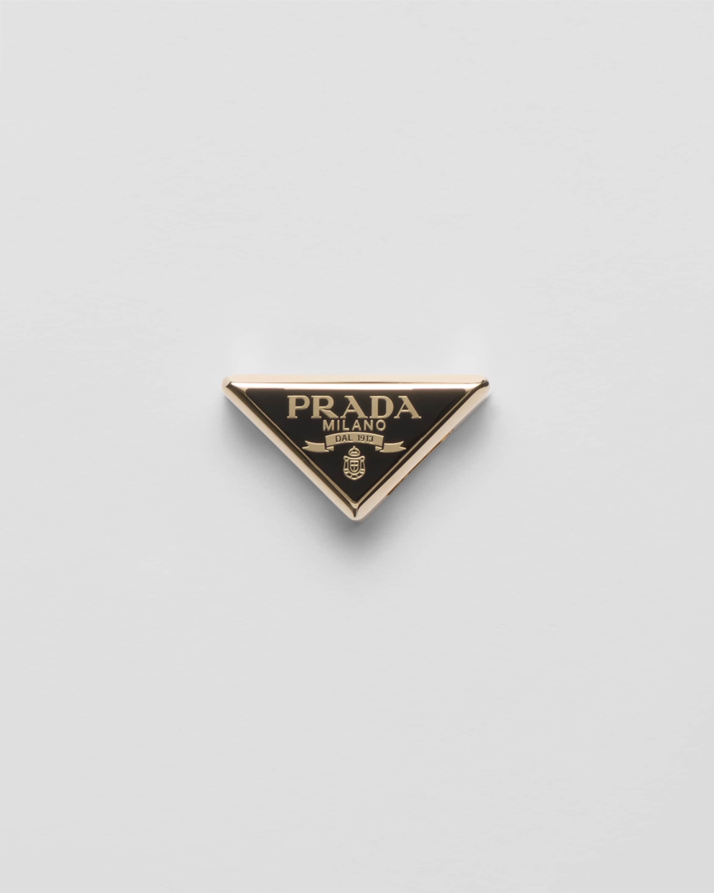 The distinctive and universal Prada triangle logo is presented in always new and contemporary versions. The iconic geometric shape outlines this refined enameled metal scarf clip. - Product code: 1FF030_2BA6_F0002 - Enameled logo - Imported MATERIALS Main material: Brass