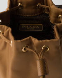 This mini-pouch bag charm, inspired by an archive design, is made of Re-Nylon, the sustainable evolution of a distinctive material of Prada collections. The style combines the functionality of regenerated nylon with refined details like the leather wristlet and gold-tone hardware. The enameled metal triangle logo enhances the accessory with an iconic touch. For sustainable care to preserve the product's characteristics and reduce microfiber shedding, we recommend not washing the item too often. Let the product air out after every use and have it dry cleaned at a specialized ecological dry cleaners. - Product code: 1TT202_2DMK_F0BR5 - Detachable leather wristlet - Enameled metal triangle logo - Imported Height: 10.5cm Width: 8.5cm MATERIALS Main material: Recycled polyamide