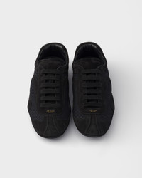Presented in 2005 for the Linea Rossa collection, Montecarlo sneakers combine style and comfort in a sophisticated and innovative design. In this new interpretation, the footwear returns with an upper in suede and mesh. The soft, flexible silhouette inspired by driving shoes is characterized by the deconstructed soles that give the shoe a light look and sleek aesthetic. - Product code: 4E1165_3D8C_F0002_F_G001 - With laces - Upper with sporty stitching - Prada Milano logo on the upper - Lightweight and flexible rubber sole characterized by protruding lugs with a patterned tread - Sole height: 5 mm - Removable leather-covered insole - Imported MATERIALS Main material: Calfskin