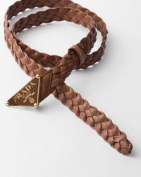 This nappa leather belt with casual but refined allure is enriched by the sophisticated braided workmanship. The accessory is embellished with the enameled metal buckle that is shaped like the iconic triangle, a distinctive signature of Prada collections. - Product code: 1CS112_2C9B_F0046 - Braided - Metal buckle with enameled metal triangle logo - Imported Height: 2.5cm MATERIALS Main material: Lambskin
