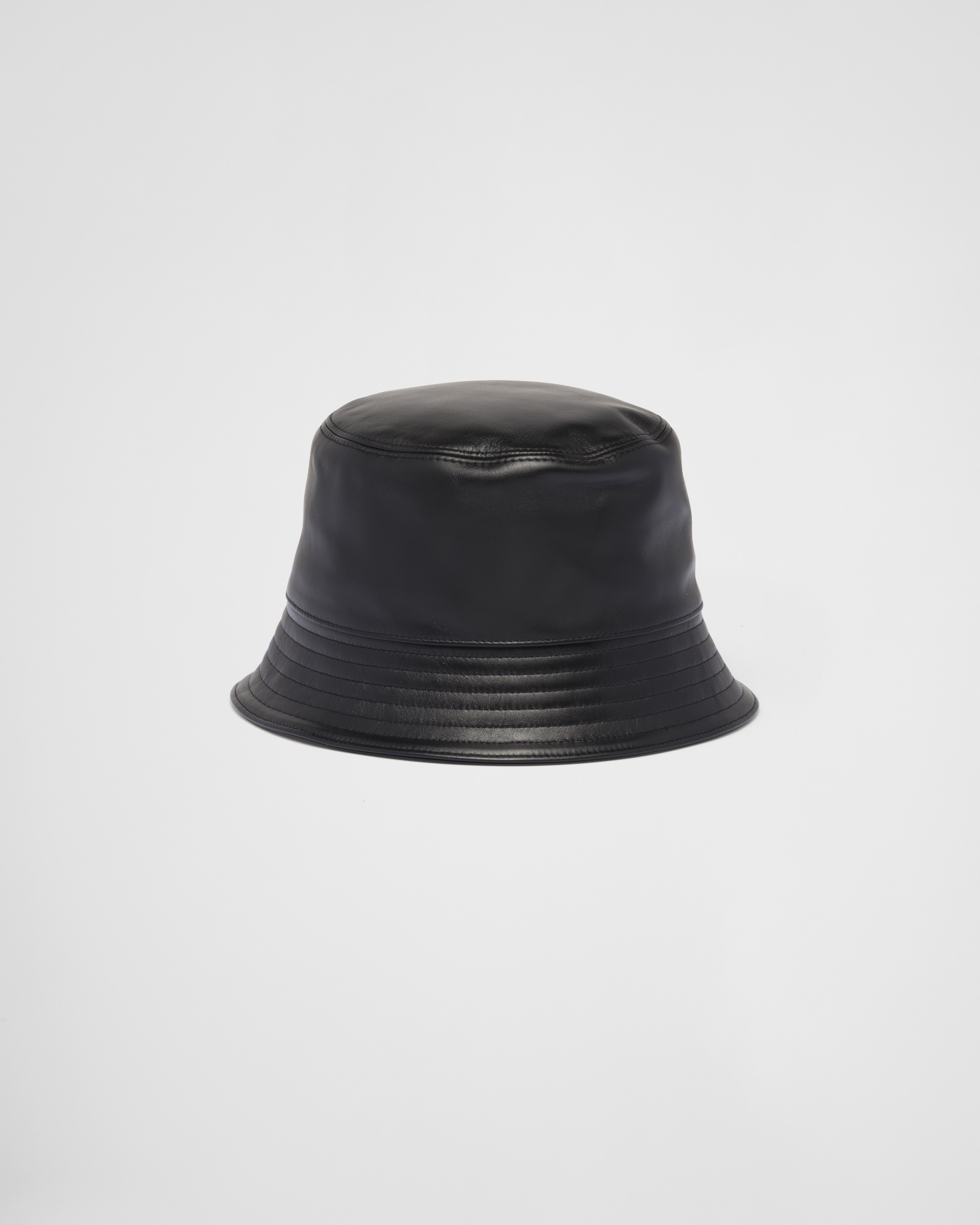 The iconic bucket hat is given a modern twist thanks to the use of soft nappa leather. The cotton-lined accessory is decorated with the enameled metal triangle logo. - Product code: 2HC137_2ATN_F0002 - Enameled metal triangle logo - Cotton lining - Imported MATERIALS Main material: Lambskin