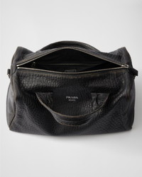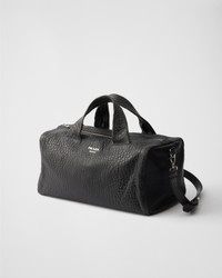 This duffle bag with a geometric, minimalist design embodies a contemporary and functional style. The soft touch of nappa leather enriches the roomy and refined accessory decorated with the lettering logo. - Product code: 2VC045_2C73_F0002_V_OOO - Leather handles - Detachable, adjustable leather shoulder strap with buckle. Maximum length 118 cm - Minimum length 105 cm - Maximum drop 54 cm - Minimum drop 45 cm - Printed logo on the front - Zipper closure - Interior with zipper pocket - Nappa leather lining - Imported Height: 20cm Width: 40cm Length: 20cm MATERIALS Main material: Lambskin