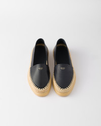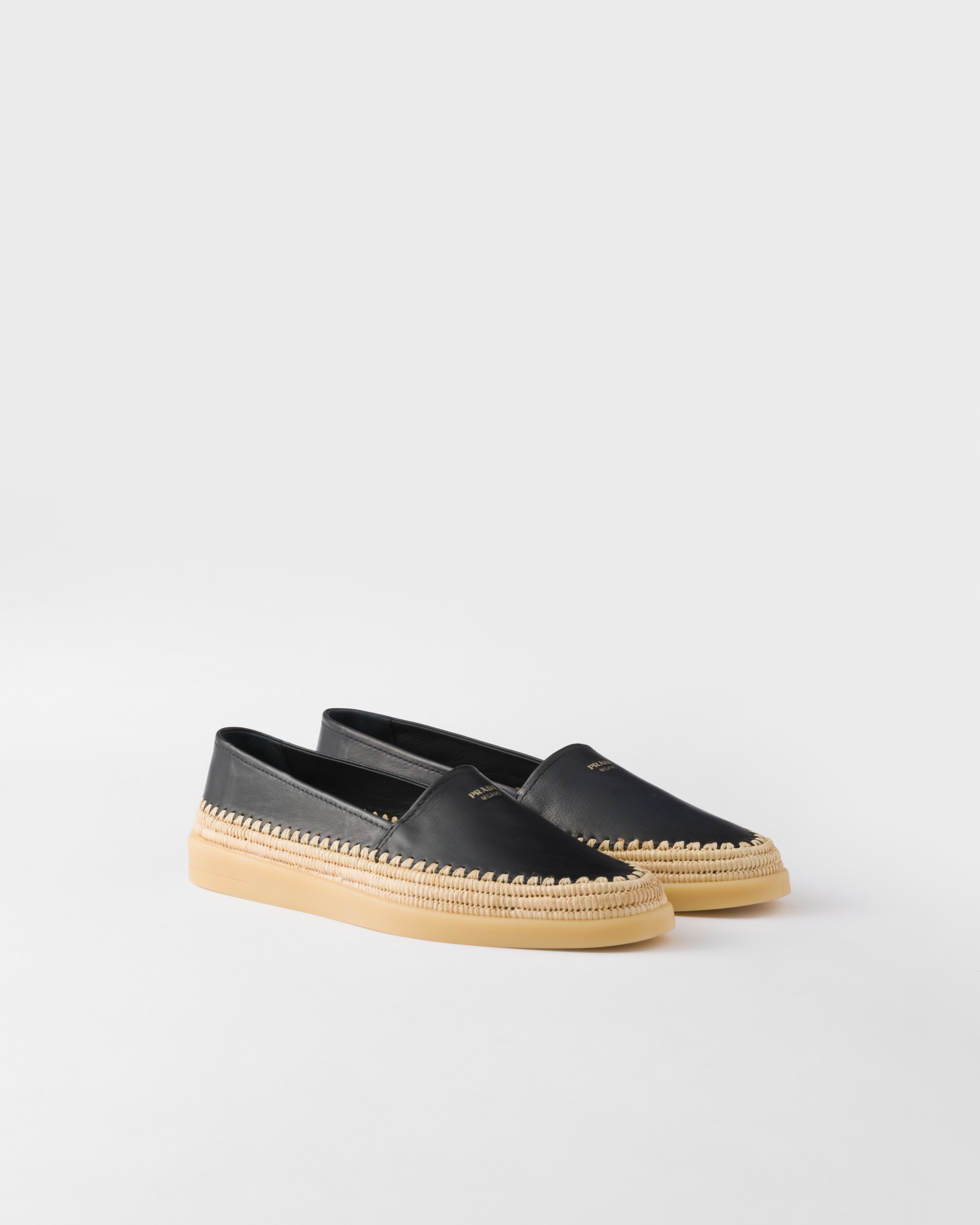 These espadrilles are reinterpreted with sporty lines and refined details that enhance the versatile character of a timeless classic. - Product code: 2DG156_038_F0008_F_G000 - Prada Milano lettering logo on the upper - Raffia band on the sole - Lightweight rubber sole - Heel height: 15 mm - Removable leather-covered insole - Imported MATERIALS Main material: Lambskin