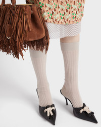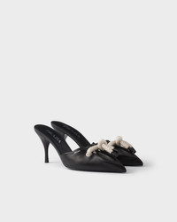 Nautical style inspires the design of these pointy-toe mules characterized by an iconic and timeless silhouette reinterpreted with unexpected notes. These nappa leather shoes with clean, tapered lines are enriched with cord details that add unique, distinctive allure. - Product code: 1I969N_038_F0X2Z_F_D085 - Upper with woven cord detail - Screen-printed logo - Leather and rubber sole with metal lettering logo - Leather-covered heel, height 85 mm - Imported MATERIALS Main material: Lambskin