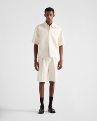 The sporty silhouette of this short-sleeved shirt is reinterpreted with a refined design in nappa leather with minimalist style. - Product code: UPC222_14IT_F0K74_S_OOO - Unlined - Regular fit - Center zipper closure - Shirt-style collar - Short sleeves - Enameled metal triangle logo - Pressed finished garment - Imported - The model is 189 cm tall and wears a size 38 Height: 70cm MATERIALS Main material: Lambskin