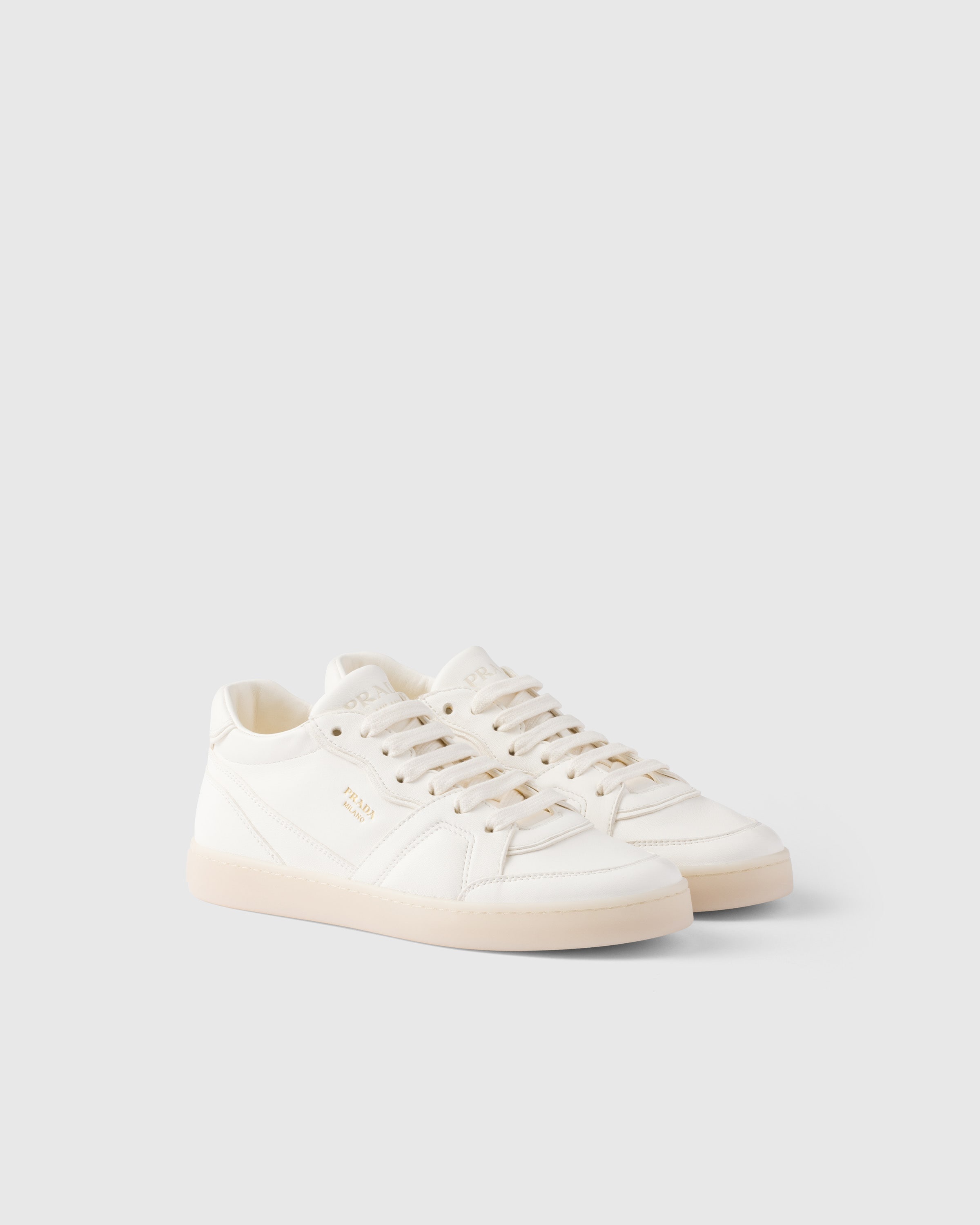These refined, sleek sneakers combine a sporty inspiration and minimalist lines with contemporary charm. The leather silhouette with a light, thin rubber sole is decorated with the lettering logo embossed on the tongue. - Product code: 1T800N_038_F0304_F_030 - Leather lining - Screen-printed logo - Cotton laces - Rubber sole, 30 mm - Tread with a geometric pattern - Removable leather-covered insole - Imported MATERIALS Main material: Lambskin