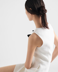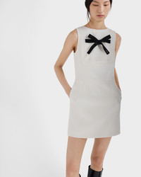 Clean lines and graphic details. This natte dress stands out for its straight neck, contrasting bow, and lettering logo. This simple vision of femininity blends rigor and lightness. - Product code: P3Q35_155H_F0009_S_OOO - Straight fit - Lined - Straight neck - Back zipper closure - Lettering logo - Contrasting bow - Imported - The model is 180 cm tall and wears a size 38 Height: 83cm MATERIALS Main material: 100% virgin wool