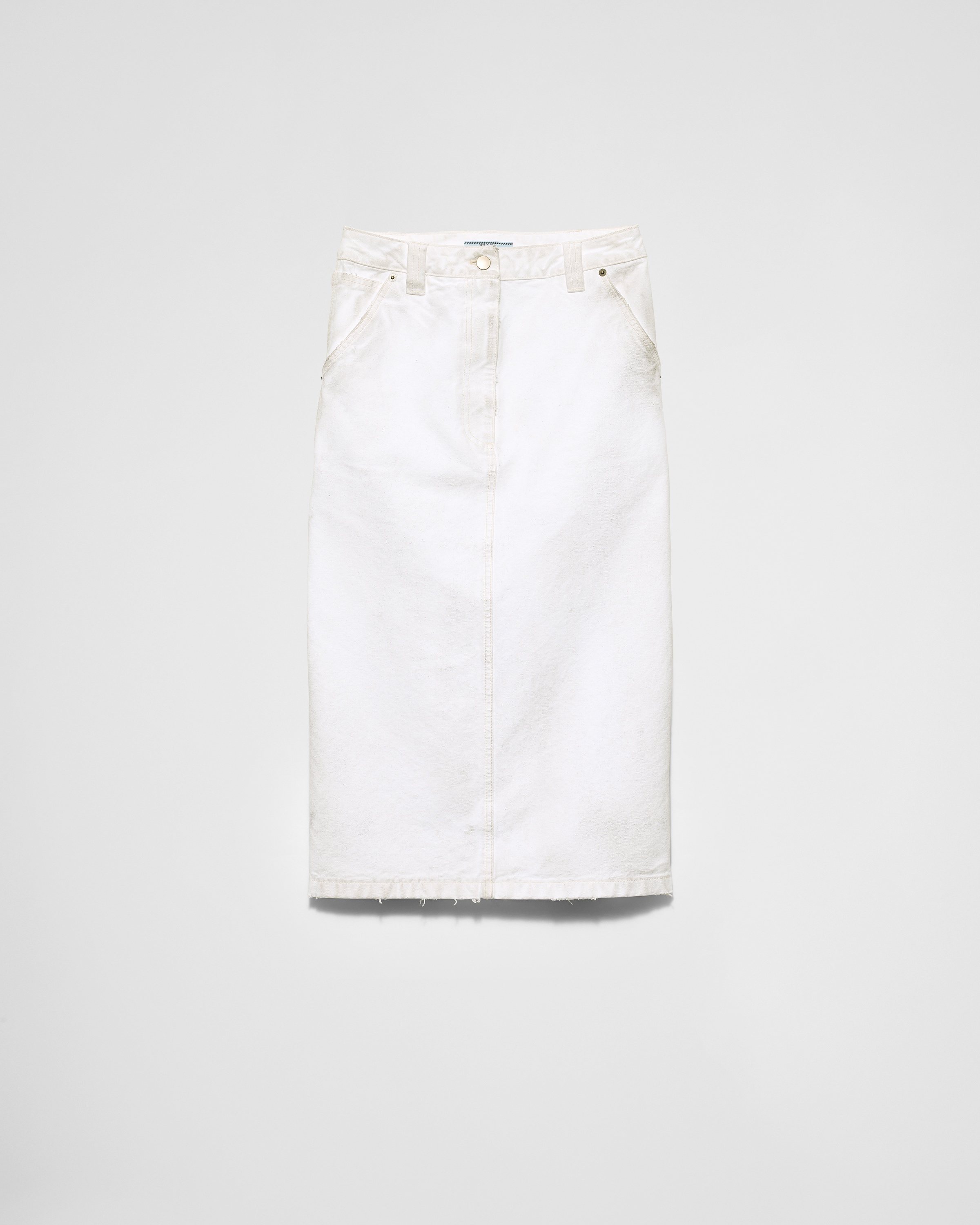 Utility details define the design of this low-rise skirt made of canvas with a vintage effect. - Product code: 21H985_15XM_F0009_S_OOO - Unlined - Center-back slit - Zipper and button fly - Angled front slash pockets - Low-rise waist - Triangle logo - Back patch pockets - Matching stitching - Dyed and treated by hand for a vintage effect - Length: cm 80, Size: 38 - Imported - The model is 178 cm tall and wears a size 38 Height: 80cm MATERIALS Main material: 100% cotton