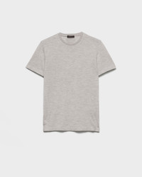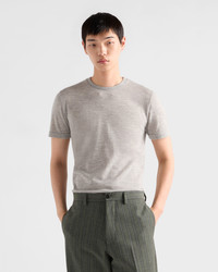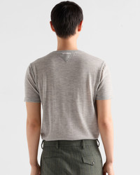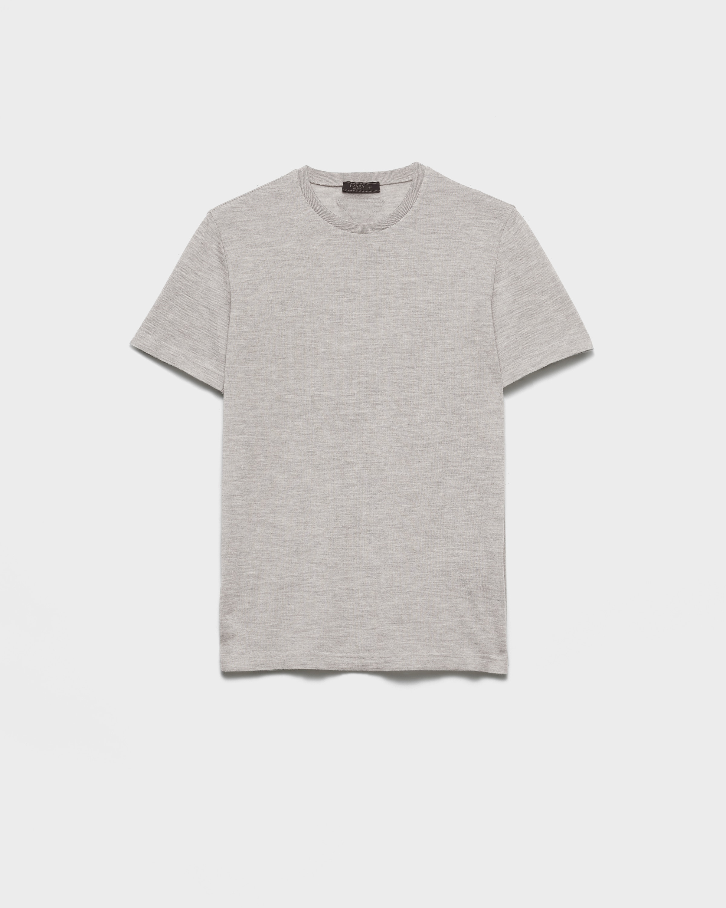 This tee reinterpreted for the winter season is made of cashmere and has a soft, oversized cut. The tonal triangle logo completes the versatile garment with sophisticated style. - Product code: UMF019_169C_F0K44_S_OOO - Plain knit - Oversized fit - Ribbed knit crew neck - Regular shoulder - Knit logo patch with sartorial logo label - Imported - The model is 189 cm tall and wears a size 48 Height: 70cm MATERIALS Main material: 100% cashmere