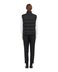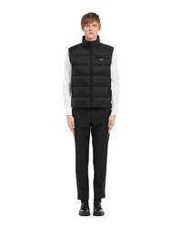 Sleek lines characterize the padded silhouette of this vest made of Re-Nylon, an innovative fabric produced from recycled, purified plastic collected in the ocean. The garment is decorated with the enameled metal triangle logo. For sustainable care to preserve the product's characteristics and reduce microfiber shedding, we recommend not washing the item too often. Let the product air out after every use and have it dry cleaned at a specialized ecological dry cleaners. - Product code: SGB033_1WQ9_F0002_S_191 - Regular fit - Stand up collar - Zipper closure - Welt pockets with zipper - Elasticized drawstring - Regular shoulder - Rounded hem at the back - Lined in recycled material with goose down padding - Enameled metal triangle logo - Imported Height: 66cm MATERIALS Main material: 100% recycled polyamide