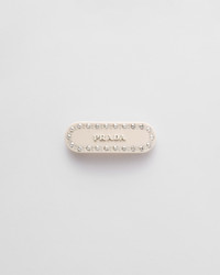 This hair clip is decorated by the Prada logo and applied crystals. - Product code: 1IF043_2CD0_F03VZ - With crystals - Clip fastening - Painted metal lettering logo - Imported MATERIALS Main material: Brass