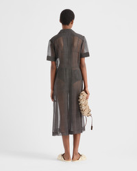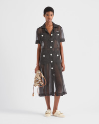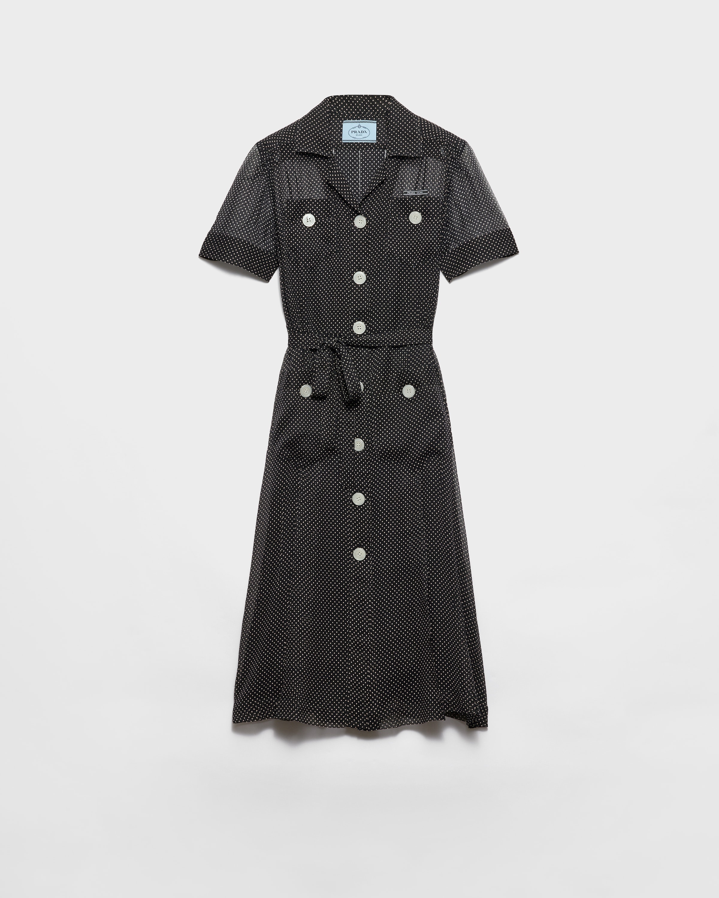 Refined details with timeless charm are featured in this silk chiffon shirt dress. The light style is animated by the graphic contrasts of the polka-dot print echoed by the buttons that accent the refined, feminine silhouette. - Product code: P3P78G_17LD_F0002_S_OOO - With slip - Bowling collar - Front button closure - Short sleeves - Patch pockets on the front - Sartorial logo label - Imported - The model is 177 cm tall and wears a size 38 Height: 120cm MATERIALS Main material: 100% silk