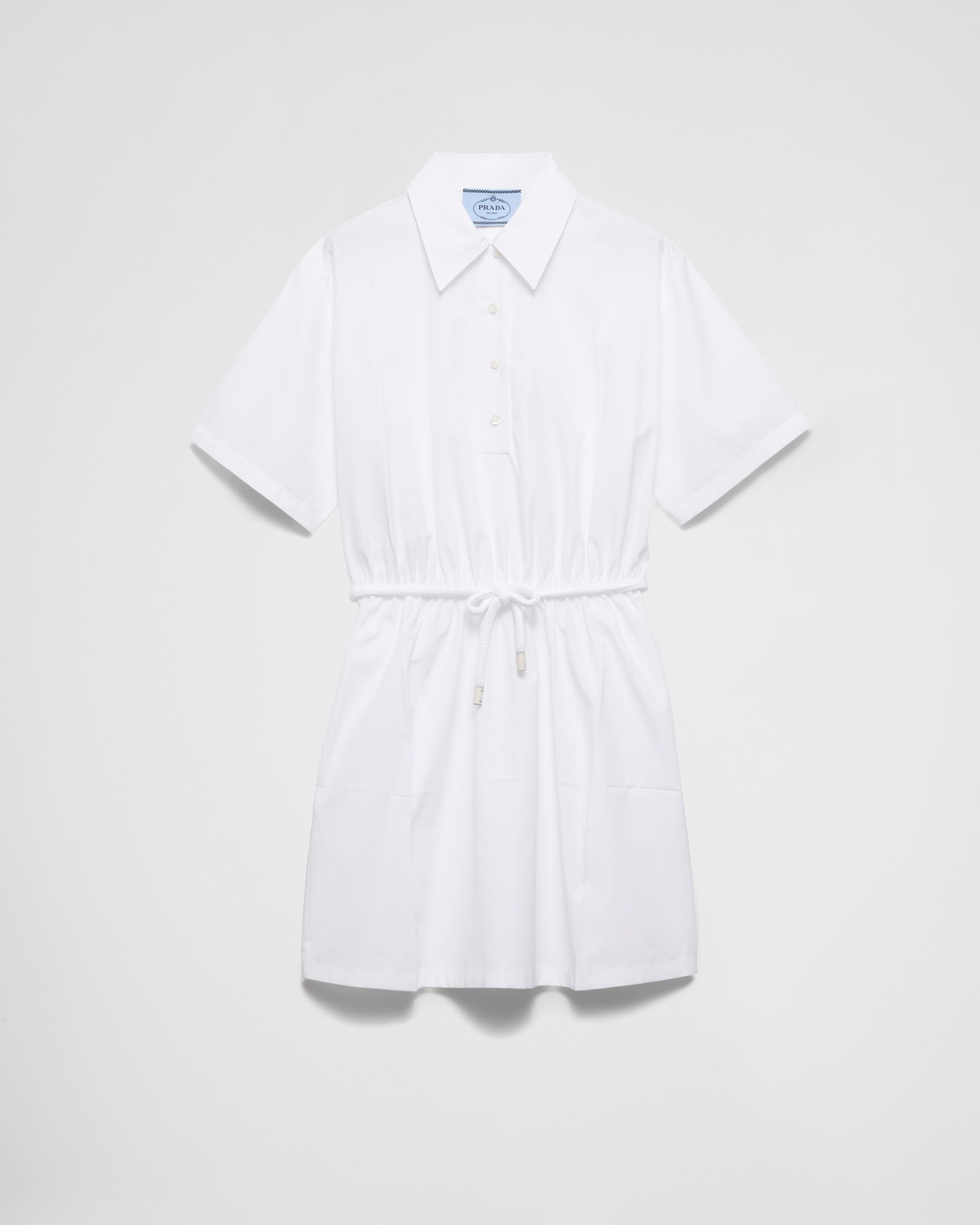 The emblematic codes of nautical style reinterpreted in a contemporary way inspire the design of this poplin dress. The loose fit with shirt collar is characterized by the cord detail that defines the waist. - Product code: P3O94C_1XV2_F0009_S_OOO - Loose fit - Unlined garment - Shirt collar - Front button closure - Short sleeves - In-seam pockets - Fabric triangle logo - Straight hem - Drawstring waist with cord - Imported - The model is 176 cm tall and wears a size 38 Height: 83cm MATERIALS Main material: 100% cotton