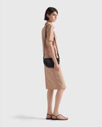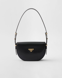 This refined and versatile leather bag features a sleek and compact design with structured volumes. To be worn over the shoulder or as a crossbody thanks to the elegant adjustable handle, the accessory with flap and nappa interior is defined by essential but refined details, an expression of the brand's artisanal know-how. The contemporary design is brightened by shiny metal hardware and is decorated with the iconic enameled metal triangle logo. - Product code: 1BD365_ASK_F0002_V_HVO - Leather handle with extension for cross-body use - Extendible shoulder strap Maximum length 122 cm - Minimum length 56 cm - Maximum drop 56 cm - Minimum drop 23 cm - Metal hardware - Enameled metal triangle logo on the flap - Magnetic closure on the flap - Nappa leather interior with patch pocket - Imported Height: 12cm Width: 23cm Length: 6cm MATERIALS Main material: Calfskin