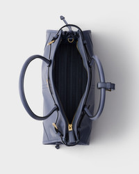 This pragmatic and refined handbag is made of soft leather with a glossy finish that emphasizes its versatile, modern allure. The geometric design blends different influences into one style with a distinctive but sleek aesthetic. Embellished by the sophisticated strap detail, the rectangular silhouette has zipper pockets inside. The enameled metal triangle logo completes the look with its iconic signature. - Product code: 1BA426_2CYR_F05GU_V_MOO - Leather handles, 22 cm drop - Detachable, adjustable shoulder strap Maximum length 125 cm - Minimum length 105 cm - Maximum drop 60 cm- Minimum drop 50 cm - Metal hardware - Enameled metal triangle logo on the front - Zipper closure - Logo-print nylon lining with zipper pocket - Imported Height: 15.5cm Width: 32cm Length: 12cm MATERIALS Main material: Calfskin