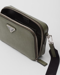 The sleek silhouette of the Prada Brique bag is enhanced by the distinctive crosshatch texture of Saffiano leather with a waxed finish. The modern, versatile accessory with detachable, adjustable shoulder strap is decorated with the enameled metal triangle logo. - Product code: 2VH173_9Z2_F0466_V_NOO - Detachable, adjustable nylon tape and leather shoulder strap - Enameled metal triangle logo on the front - Zipper closure - Ring for a trick on shoulder strap - Interior with patch pocket - Logo-print Re-Nylon lining - Imported Height: 11.5cm Width: 19cm Length: 3.5cm MATERIALS Main material: Calfskin