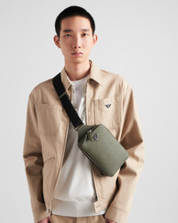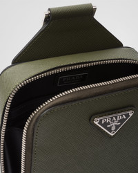 This elegant Saffiano leather shoulder bag with a handle, shoulder strap, and two zipper pockets has a sleek silhouette. - Product code: 2VZ106_9Z2_F0466_V_OOO - Adjustable nylon tape and leather shoulder strap - Enameled metal triangle logo on the front - Zipper closure - Interior with patch pocket - Logo-print nylon lining - Imported Height: 20cm Width: 14cm Length: 4cm MATERIALS Main material: Calfskin