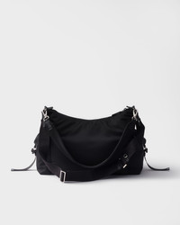 The perfect synthesis of refinement and functionality, the Explore bag embodies a dynamic and contemporary style. The bag is reinterpreted with a hobo silhouette in Re-Nylon, provided with a removable handle and shoulder strap for versatile wear. Leather details and metal hardware complete the multi-pocket design created for urban explorations and outdoor adventures. - Product code: 2VH204_2DW3_F0002_V_OOO - Removable padded woven nylon tape strap - Detachable, adjustable woven nylon tape shoulder strap. Maximum length 125 cm - Minimum length 77 cm - Maximum drop 62 cm - Minimum drop 38 cm - Enameled metal triangle logo on the front - Zipper closure - Two external zipper pockets with flap and side-release buckles - Internal zipper pocket - Re-Nylon lining - Imported Height: 29.5cm Width: 43cm Length: 15cm MATERIALS Main material: Recycled polyamide