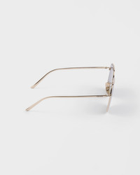 Metal sunglasses with sleek elegance. The frame features delicate rims and clean lines, while the slim temples are decorated with the finely engraved Prada lettering logo. - Product code: SPRC54_EZVN_FE50Q_C_057 - Metal frame front - Color: Pale Gold - Frame compatible with graduated lenses - 100% UVA / UVB protection - Adjustable nose pads suitable for any fit - Lens-nose-temple measurements: 57-17-145 mm - Article comes with dedicated packaging - Other colors available - Imported MATERIALS Metal