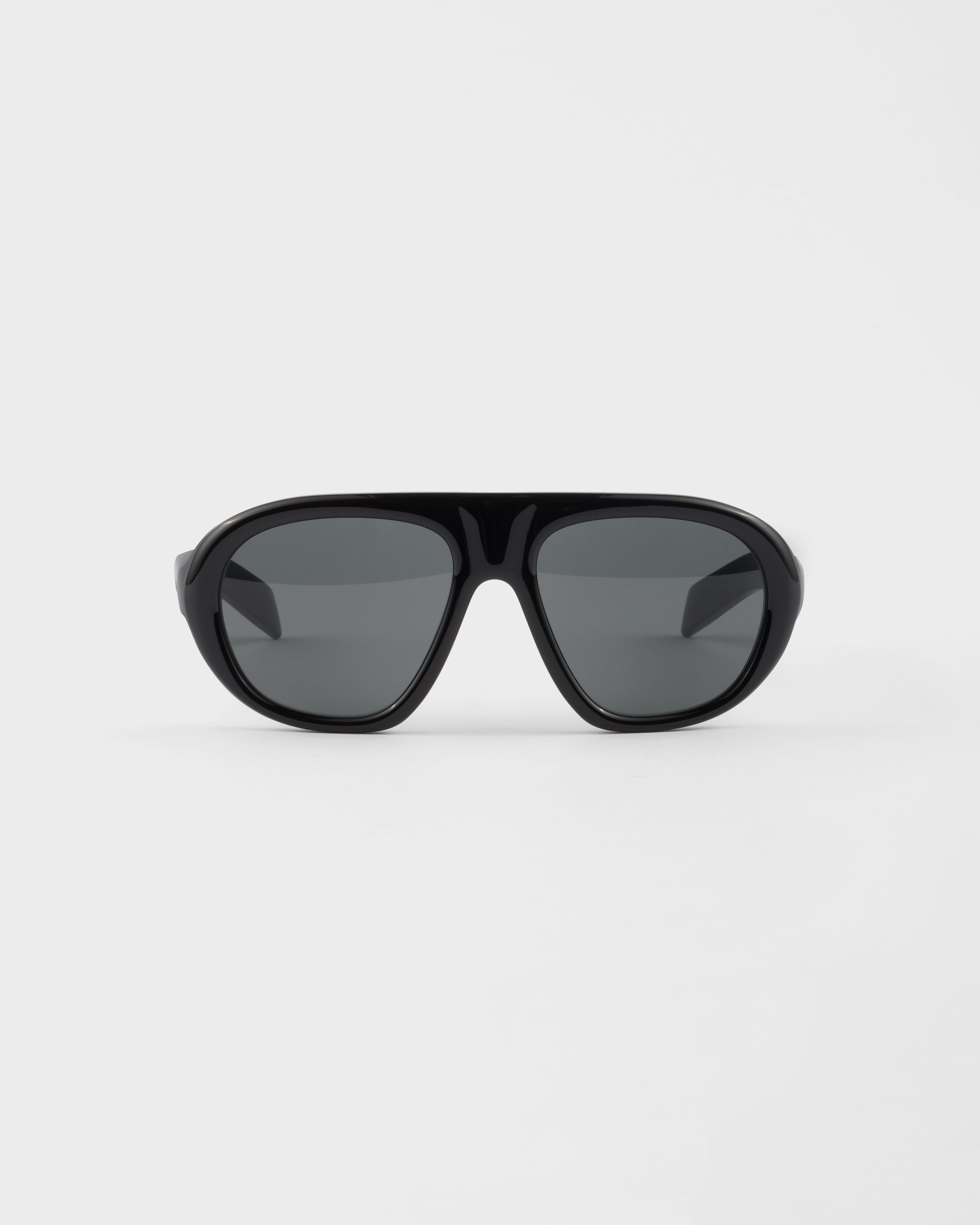 Acetate sunglasses with an oversized design. The frame features an oversized pilot silhouette and large volumes that give it a contemporary, feminine look. The rounded temples are decorated with the enameled Prada logo. - Product code: SPRC05_E16K_FE08Z_C_057 - Recycled bio-acetate frame front - Color: Black - Frame compatible with graduated lenses - 100% UVA / UVB protection - Standard Fit - Lens-nose-temple measurement: 57-18-135 mm - Article comes with dedicated packaging - Other colors available - Imported MATERIALS Acetate