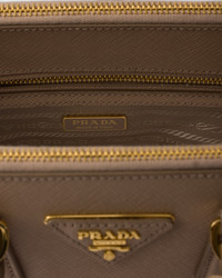 The Prada Galleria bag with an elegant, timeless design reflects the many facets of the Prada identity. The iconic style in a mini version with a new, elongated silhouette has a detachable shoulder strap for crossbody wear. The emblematic crosshatch texture of Saffiano leather gives the bag a distinctive, versatile character. - Product code: 1BA916_NZV_F0770_V_EOO - Leather handles - Detachable, adjustable leather shoulder strap. Maximum length 120 cm - Minimum length 110 cm - Maximum drop 60 cm- Minimum drop 55 cm - Removable leather key ring - External zipper pockets - Metal hardware - Leather triangle with metal lettering logo on the front - Snap closure on the sides - Logo-printed nylon interior with two pockets, including one with zipper - With purse feet - Imported Height: 12.5cm Width: 21cm Length: 8.5cm MATERIALS Main material: Calfskin