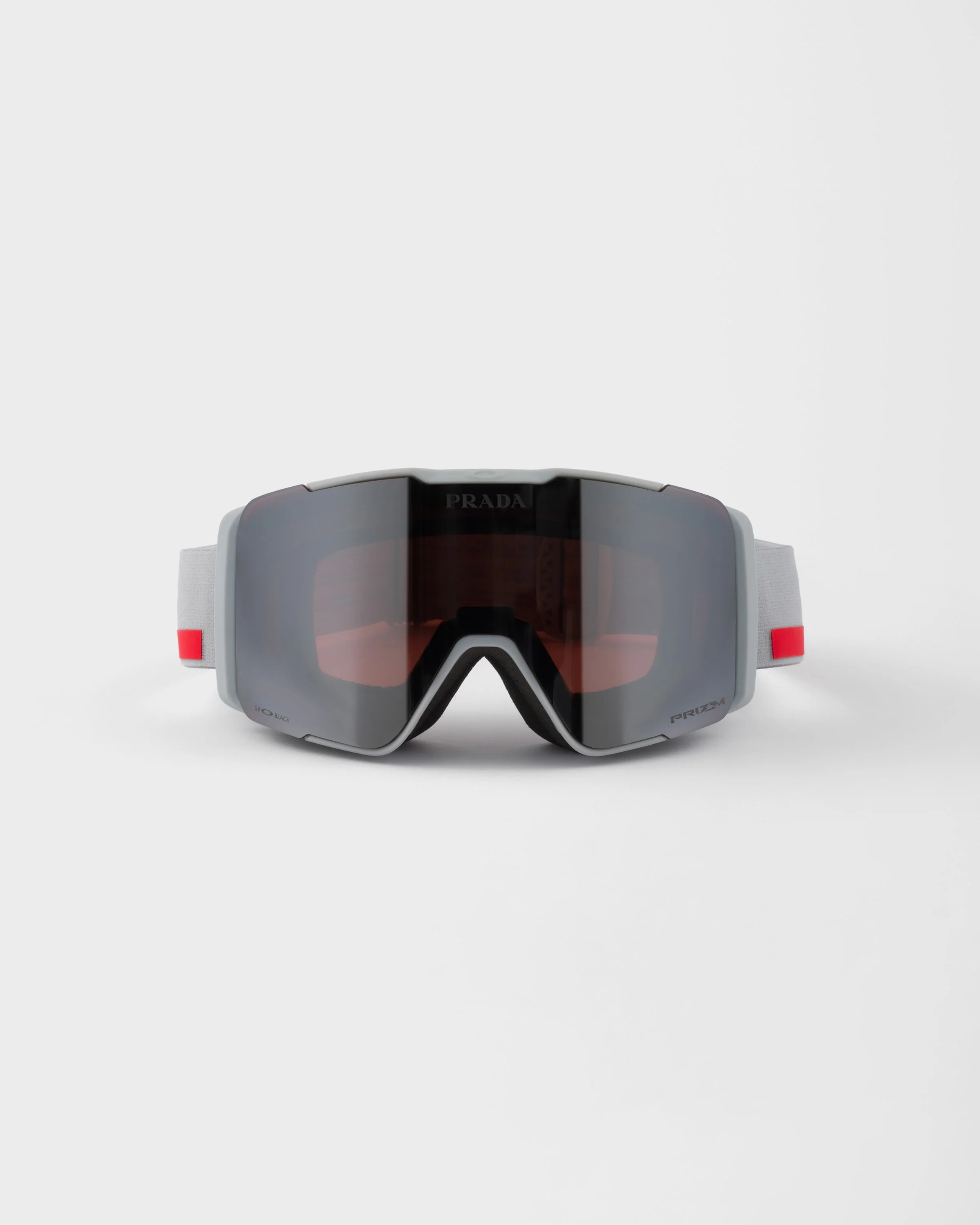 Special Edition Prada Linea Rossa by Oakley. Wrap-around snow goggle with large, interchangeable rimless lenses that offer superior peripheral vision. The Iridescent Black lens is suitable for bright, sunny days, while the Iridescent Pink lens is specific for cloudy and snowy days. Prizm™ technology optimizes the visual experience and emphasizes details, ensuring perfect visibility. The Single Layer anti-fog treatment reduces light refraction and reflection. The adjustable elasticized strap is compatible with the Prada Linea Rossa by Oakley snow helmet and other types of helmets. - Product code: SPSB01_E591_FE753_C_040 - Elasticized strap color: Matte Gray - Interchangeable lenses with Prizm™ technology that increases visual contrast and Single Layer anti-fog treatment - Switchlock technology with 6 magnets around the frame for quick lens changes based on weather conditions - 100% UVA / UVB protection - Soft three-layer foam interior with moisture-wicking polar fleece lining - Compatible with the Prada Linea Rossa by Oakley snow helmet - Size M - Article comes with dedicated packaging - Other colors available - Imported MATERIALS Main material: Acetate