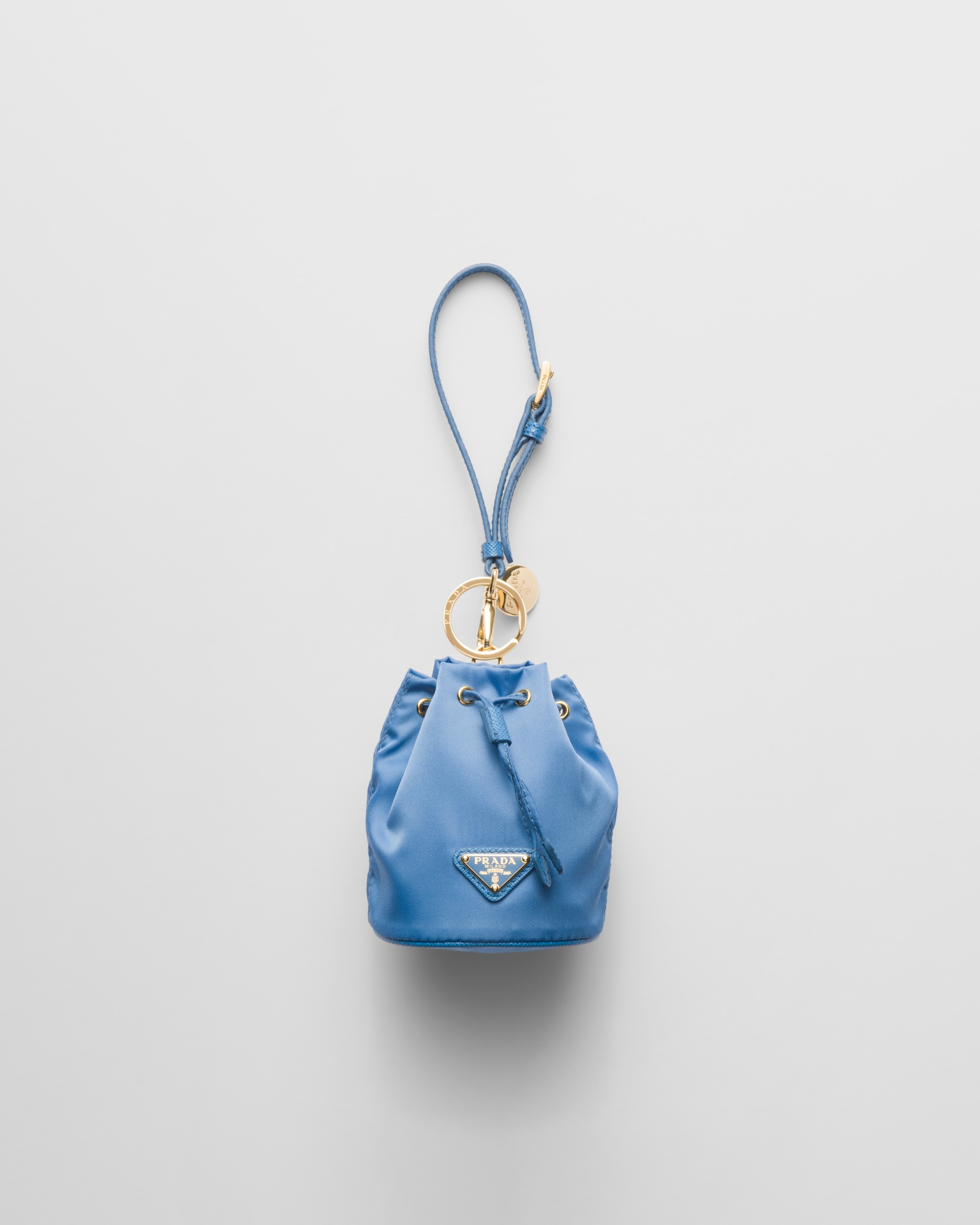 This mini-pouch bag charm, inspired by an archive design, is made of Re-Nylon, the sustainable evolution of a distinctive material of Prada collections. The style combines the functionality of regenerated nylon with refined details like the leather wristlet and gold-tone hardware. The enameled metal triangle logo enhances the accessory with an iconic touch. For sustainable care to preserve the product's characteristics and reduce microfiber shedding, we recommend not washing the item too often. Let the product air out after every use and have it dry cleaned at a specialized ecological dry cleaners. - Product code: 1TT202_2DMK_F03FQ - Detachable leather wristlet - Enameled metal triangle logo - Imported Height: 10.5cm Width: 8.5cm MATERIALS Main material: Recycled polyamide