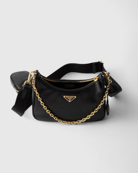 Inspired by the iconic mini hobo style, the Prada Re-Edition 2005 bag is presented in leather with a versatile design, enriched by the removable pouch that adds a contemporary touch. - Product code: 1BH204_2C6A_F0002_V_V9O - Removable chain handle - Detachable, adjustable logo-print woven tape shoulder strap, length: 85 cm. Maximum length 104 cm - Minimum length 70 cm - Maximum drop 60 cm- Minimum drop 43 cm - Removable leather zipper pouch and Re-Edition key ring - Metal hardware - Enameled metal triangle logo on the front - Zipper closure - Logo-print nylon lining - Imported Height: 18cm Width: 22cm Length: 6cm MATERIALS Main material: Calfskin