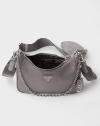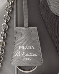 Inspired by the iconic mini hobo bag, the Prada Re-Edition 2005 shoulder bag is made of Re-Nylon: a regenerated nylon yarn (ECONYL®)produced from recycled, purified plastic trash collected in the ocean, fishing nets and textile waste fibers. This versatile bag with Saffiano leather trim comes with a detachable pouch attached to the shoulder strap. For sustainable care to preserve the product's characteristics and reduce microfiber shedding, we recommend not washing the item too often. Let the product air out after every use and have it dry cleaned at a specialized ecological dry cleaners. - Product code: 1BH204_R064_F0CUK_V_V9L - Saffiano trim - Removable chain handle - Detachable adjustable 85 cm logo-print woven nylon shoulder strap - Removable Re-Nylon zipper pouch with Re-Edition keychain - Metal hardware - Enameled metal triangle logo on the front - Zipper closure - Re-Nylon logo lining - Imported Height: 18cm Width: 22cm Length: 6cm MATERIALS Main material: Recycled polyamide