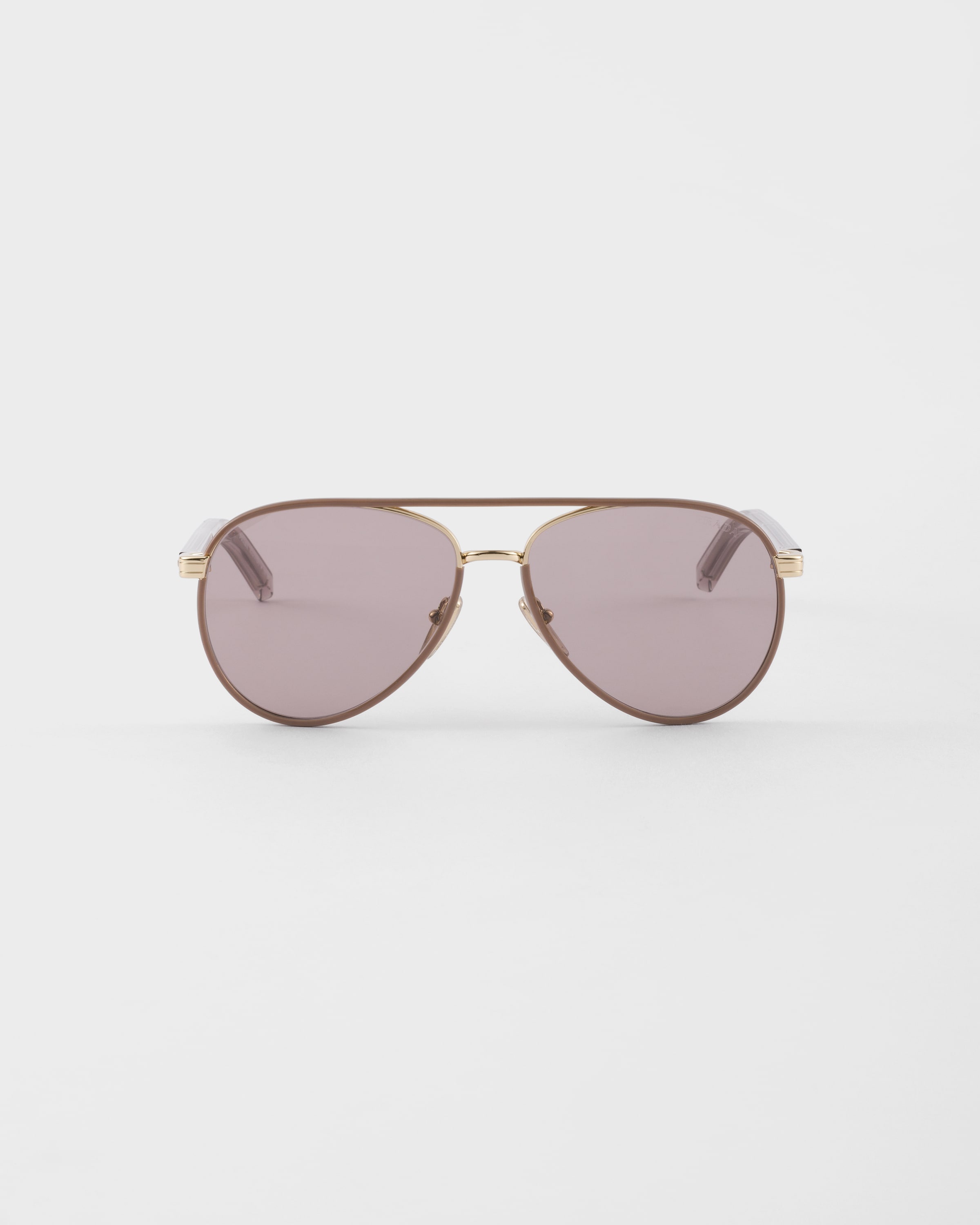 Sleek lines and refined details give these new Prada sunglasses a sense of contemporary elegance. The metal aviator frame front has teardrop lenses enhanced by colored acetate rims. The slim temples are enriched by the metal plaque with the Prada lettering logo. - Product code: SPRB57_E24E_FE20I_C_059 - Metal frame front - Color: Pecan & Pale Gold - Frame compatible with graduated lenses - 100% UVA / UVB protection - Adjustable nose pads suitable for any fit - Lens-nose-temple measurement: 59-15-145 mm - Article comes with dedicated packaging - Other colors available - Imported MATERIALS Metal