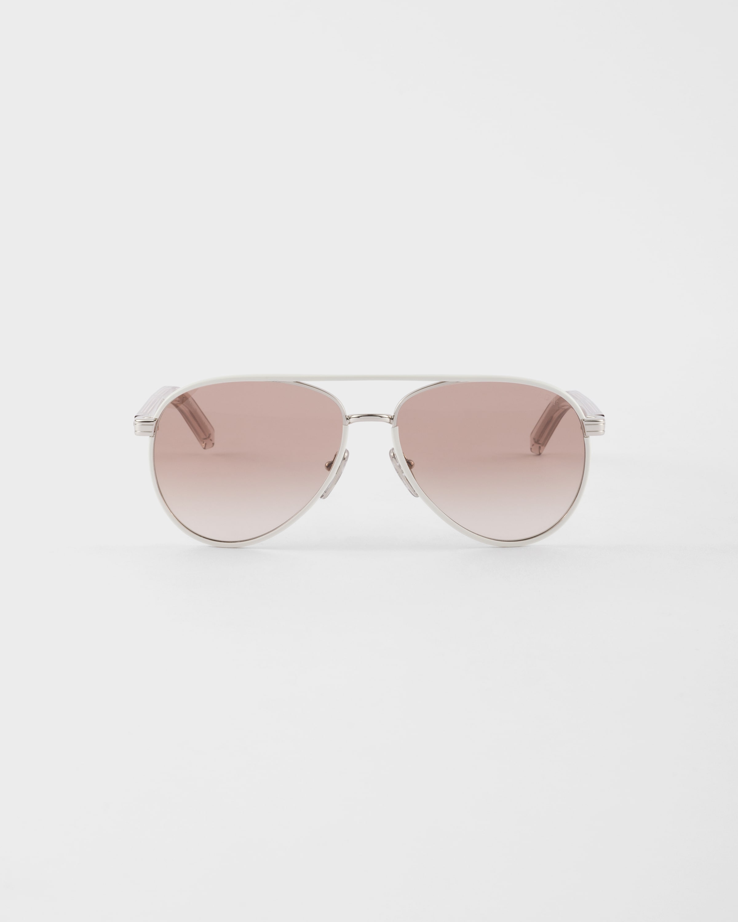 Sleek lines and refined details give these new Prada sunglasses a sense of contemporary elegance. The metal aviator frame front has teardrop lenses enhanced by colored acetate rims. The slim temples are enriched by the metal plaque with the Prada lettering logo. - Product code: SPRB57_E23E_FE10S_C_059 - Metal frame front - Color: Chalk White & Silver - Frame compatible with graduated lenses - 100% UVA / UVB protection - Adjustable nose pads suitable for any fit - Lens-nose-temple measurement: 59-15-145 mm - Article comes with dedicated packaging - Other colors available - Imported MATERIALS Metal