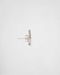 Prada's historic symbol decorated with enamel defines this pair of earrings. Iconic and sleek, the triangle logo is the protagonist of a new line of jewelry made of 925 sterling silver that reinterprets punk influences in a modern way. - Product code: 1JO972_2DSP_F0009 - 925 sterling silver with enamel - Palladium finish - Visible logo - For pierced ears - Imported MATERIALS Main material: 925 Silver