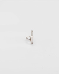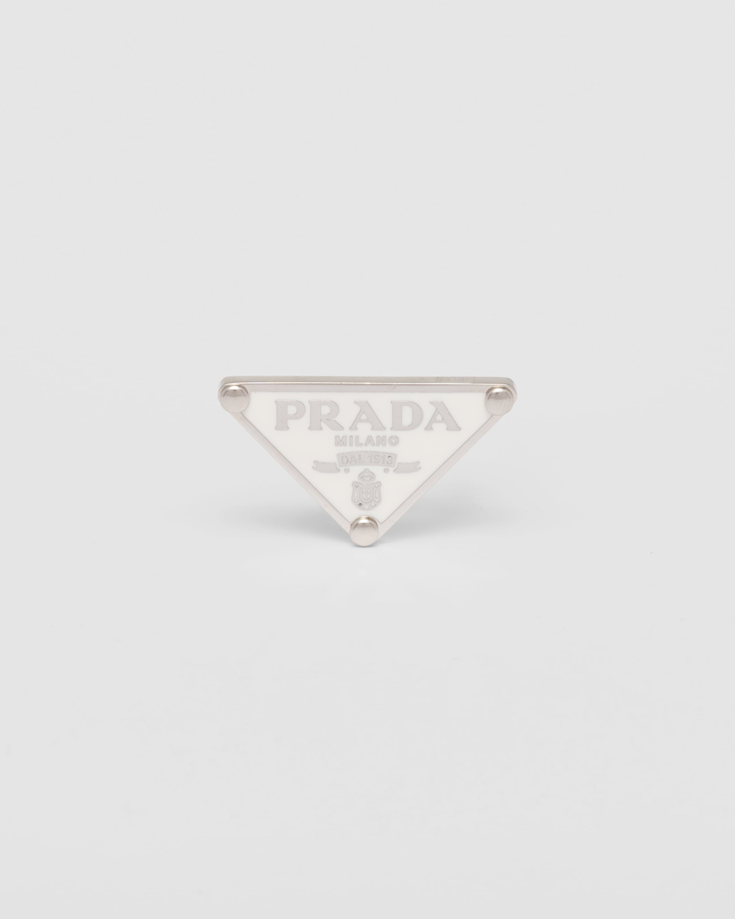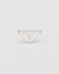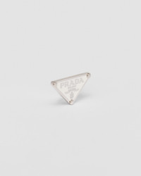Prada's historic symbol decorated with enamel defines this single earring worn on the left. Iconic and sleek, the triangle logo is the protagonist of a new line of jewelry made of 925 sterling silver that reinterprets punk influences in a modern way. - Product code: 1JO722_2DSP_F0009 - 925 sterling silver with enamel - Palladium finish - Visible logo - Clip back earring - Left ear - Imported Width: 3.2cm MATERIALS Main material: 925 silver