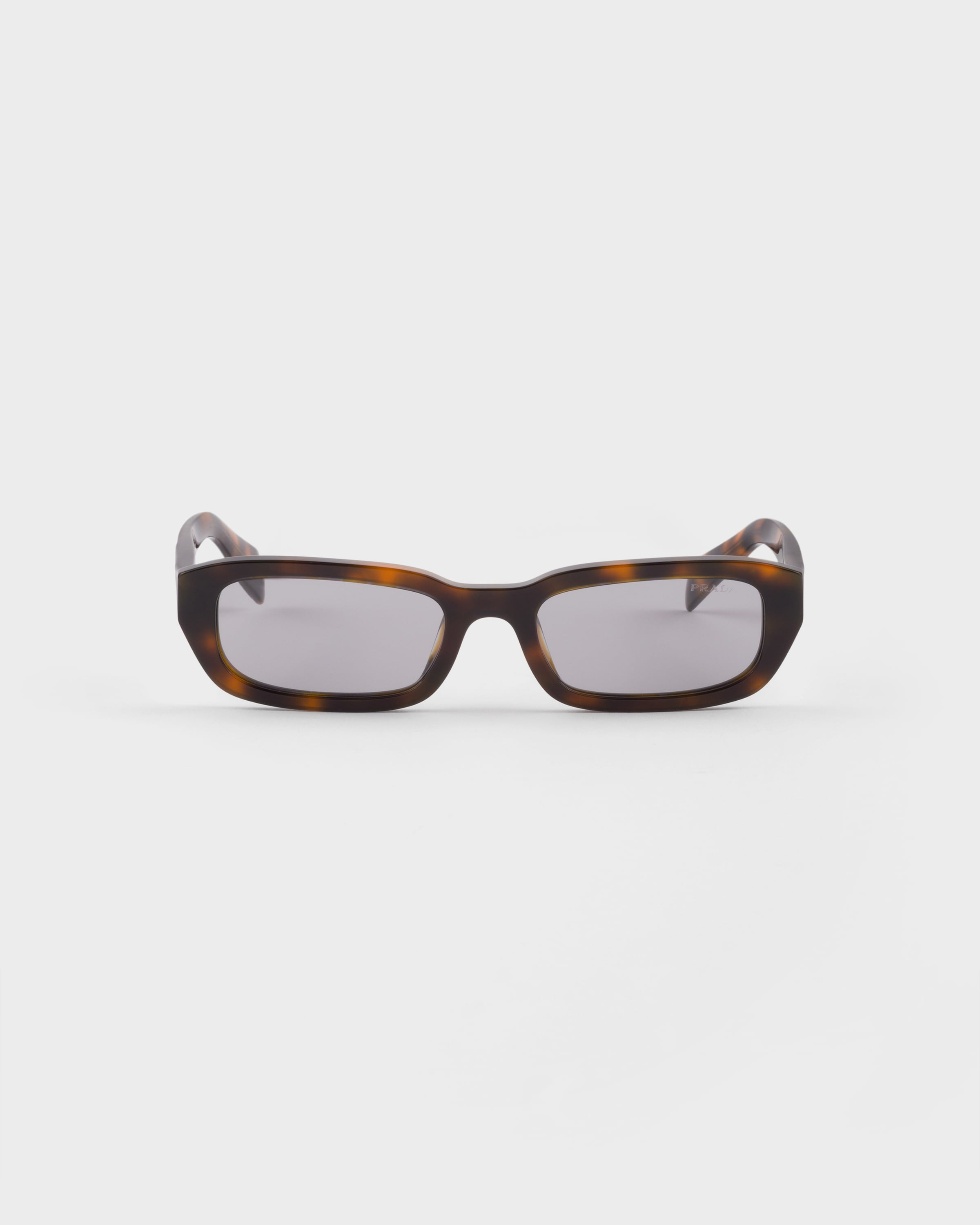Acetate sunglasses characterized by faceted rims and geometric lines. The temples feature refined three-dimensional workmanship that highlights the iconic triangle logo. - Product code: SPRB06_E20D_FE50Q_C_053 - Recycled bio-acetate frame front - Color: Juniper Tortoiseshell - Frame compatible with graduated lenses - 100% UVA / UVB protection - Standard Fit - Lens-nose-temple measurement : 53-19-145 mm - Article comes with dedicated packaging - Other colors available - Imported MATERIALS Acetate