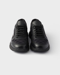 These sneakers, an evolution of the iconic Prax style, feature a contemporary design inspired by running shoes. The combination of Re-Nylon and leather elevates the sporty uppers, complemented by lightweight and flexible soles. - Product code: 2EE444_3LNW_F0002_F_G000 - Upper with eyelets for laces - Enameled metal triangle logo - Screen-printed Prada Milano logo on the tongue - Lightweight sole with lug tread - Sole height 25 mm - Removable leather-covered insole - Imported MATERIALS Main material: Calfskin