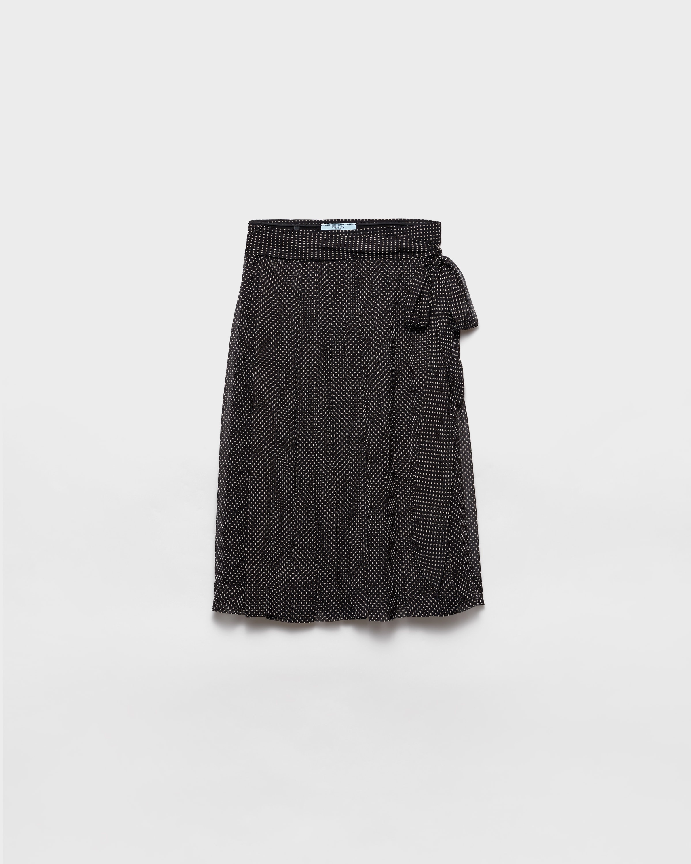 Sophisticated lines and details with vintage charm define this printed chiffon skirt. The wrap style is enriched with pleating on the front that adds movement to the silhouette. - Product code: P191W_17LD_F0002_S_OOO - «Polka-dot» print - Garment with slip - Side closure with tie - Pleated front panel - Imported - The model is 176 cm tall and wears a size 38 Height: 65cm MATERIALS Main material: 100% silk