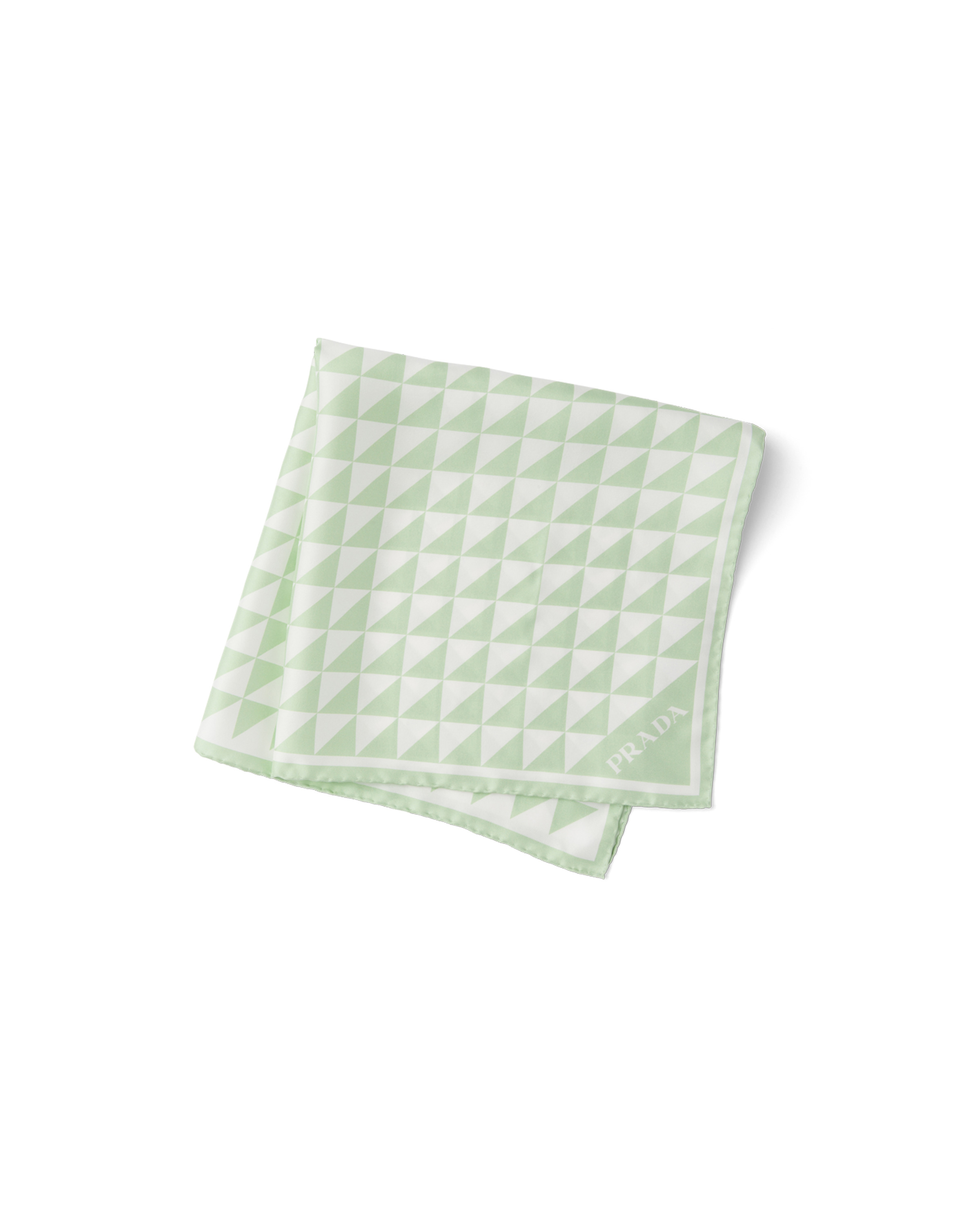 The triangle, Prada's iconic logo since 1913, is reimagined in always new ways and is found in the graphic pattern on this twill scarf. - Product code: 1FF004_2DTP_F077L - Triangle print - Print logo - Imported Height: 55cm Width: 55cm MATERIALS Main material: Silk